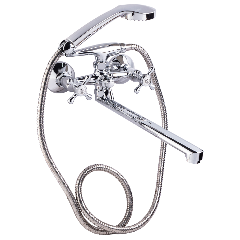 Змішувач для ванни Lidz Kubis 0061 з душовим гарнітуром (k35) у нікельованому виконанні поєднує стил..