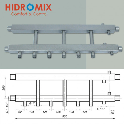 Коллекторная балка Hidromix на 3 нижних выхода до 110 кВт від провідного виробника  найнижча ціна знижка акція відгуки доставка по Україні. 217C Дніпро, Київ, Одеса, Харків, Дніпропетровськ, Полтава, Запоріжжя