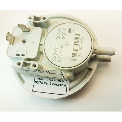 90/70 Па, Датчик давления воздуха, Прессостат для газовых колонок (дифференциальное реле давления дыма) ПЛАСТИЧНЫЙ Пресостат HUBA, 2 сокетом