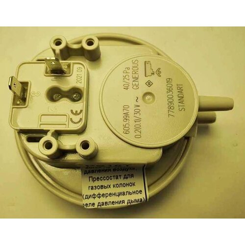 40/25 Па, Датчик давления воздуха, Прессостат для газовых колонок (дифференциальное реле давления дыма) Пластичный Прессостат HUBA, Demrad Neva, Atron H24, Nepto HKT2 24, Protherm Рысь Lynx 24, 3003202405