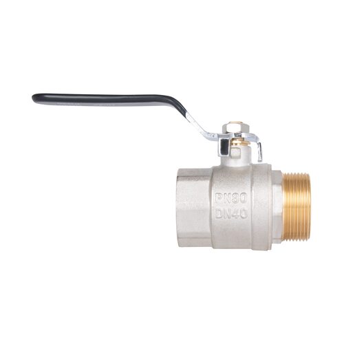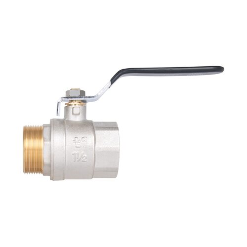 Кран кульовий SD Plus 1" 1/2 ВЗ для води (важіль) SD605W40 виготовлений з латуні, вкритий нікелевим покриттям для посилення захисту виробу від корозії. Різьба під’єднання — з одного боку внутрішня, з іншого — зовнішня. Така водопровідна арматура призначена для повного перекриття потоку робочого середовища. Для перемикання стану відкрито/закрито використовують ручку-важіль, її необхідно повернути одним рухом на 1/4 обороту (90°). Кран не призначений для регулювання! Запірний механізм — куля.