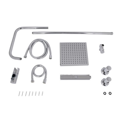 | Комплектація | Кронштейн для верхнього душу, лійка для верхнього душу, кронштейн для ручного душу, лійка для ручного душу, душовий шланг, душова стійка, шланг підмикання, кріпильні деталі. |