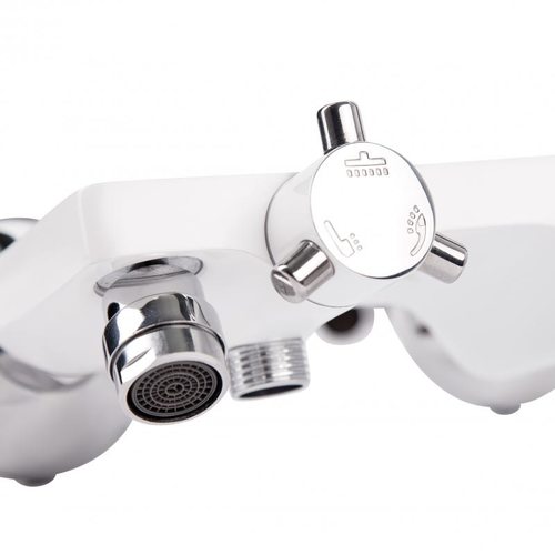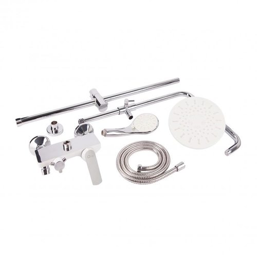 Комплектація Змішувач, кронштейн для верхнього душу, лійка для верхнього душу, кронштейн для ручного душу, лійка для ручного душу, душовий шланг, душова стійка, полиця, кріпильні деталі.