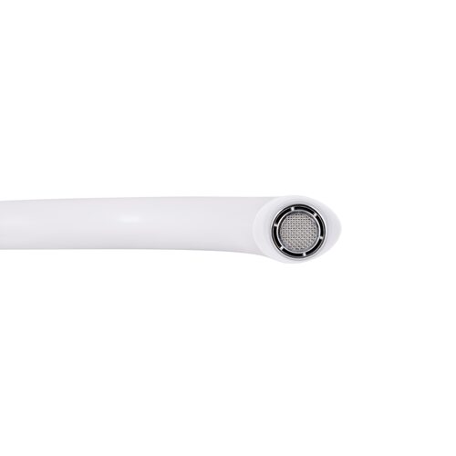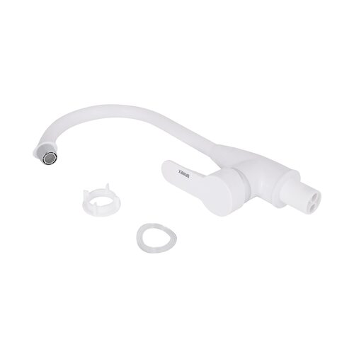 Змішувач для кухні Brinex 35W 007 виготовлений з ABS пластику. Має одноважільне управління, яке регулює натиск холодної та гарячої води. Виконаний в сучасному, стриманому дизайні з білою матовою поверхнею. Такий змішувач можна назвати універсальним, бо він буде ідеально виглядати в будь-якому інтер'єрі кухні.