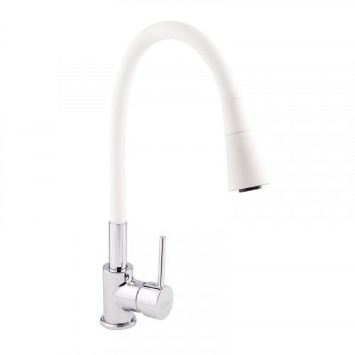 Змішувач для кухні Qtap Spring з гнучким виливом QTSPRCRW007F1 Chrome/White