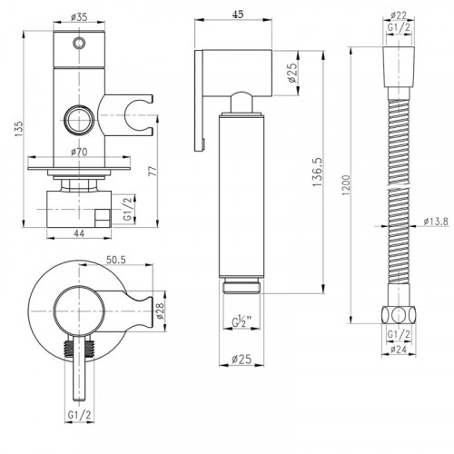 Комплектація | Лійка для гігієнічного душу, змішувач, душовий шланг, ключ, кріпильні деталі. |