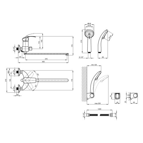 Додаткові характеристики | Габарити лійки для ручного душу: 210х85х60. Довжина душового шланга - 1400 мм. |