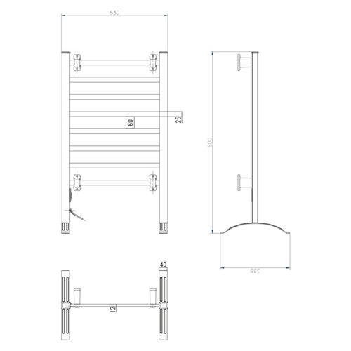 Комплектація Сушарка рушників, ніжки, настінні кріпильні деталі.