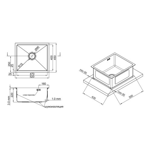 Зверніть увагу | Нами докладено всіх зусиль для подання точної та правдивої інформації в описі виробу. Тип і основні розміри відповідають зазначеним на кресленні, але, зважаючи на особливості виробництва та матеріалів, розміри можуть змінюватись в межах від -3 до -7 мм, тому виріз у стільниці необхідно робити виключно за наявності миття. Виробник залишає за собою право вносити зміни до конструкції виробів та комплектації, які не погіршують якість, без попереднього повідомлення. до -7 мм, тому виріз у стільниці н |