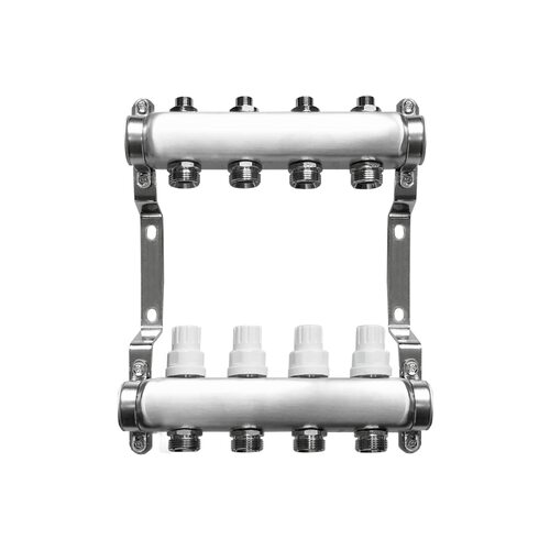 Колектор SD Plus 1" 2 виходи SD0052 з термостатичними та регулювальними клапанами виконує функцію розподілу теплоносія. Різьба під’єднання до системи — внутрішня (один дюйм), для приєднання контурів — зовнішня (три чверті дюйма). Матеріал виготовлення колекторних балок — нікельована нержавіюча сталь.
