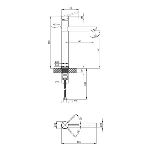 Габаритні розміри виробу (ШхГхВ), мм | 48х225х350 |