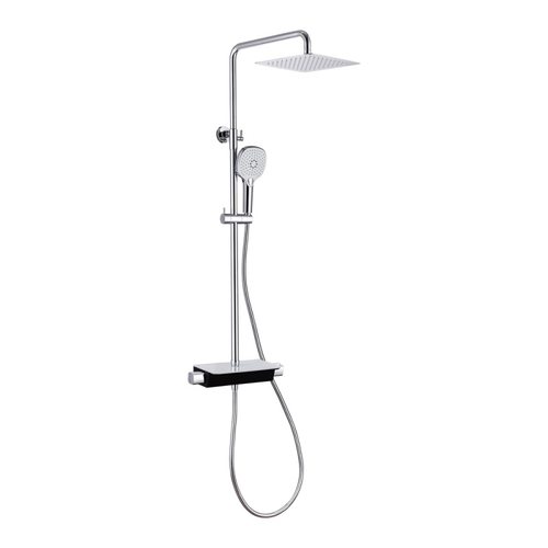Комплектація | Змішувач, кронштейн для верхнього душу, лійка для верхнього душу, кронштейн для ручного душу, лійка для ручного душу, душовий шланг, душова стійка, рівень, кріпильні деталі. |