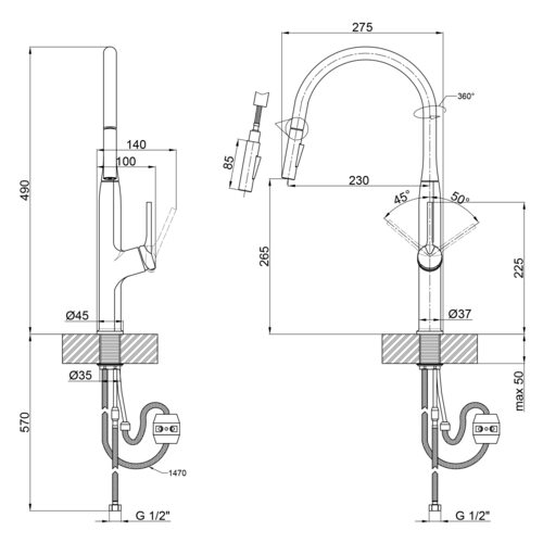 Додаткові характеристики | Довжина висувного шланга - 1470 мм. Довжина гнучкого підводу - 570 мм. |