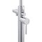 Підлоговий змішувач для ванни Qtap Podlaha 19103UGC виготовлений зі зносостійких латуні та нержавіючої сталі. Завдяки рівномірному хромованому покриттю виріб має привабливий зовнішній вигляд і стійкий до механічних пошкоджень. Змішувач комплектується душовою лійкою з інтегрованим у штангу тримачем та душовим шлангом. Подача води регулюється за допомогою джойстика, а перемикання у душовий режим - дивертором. Такий змішувач вигідно підкреслить інтер'єр з ванною, що розташована посеред кімнати.