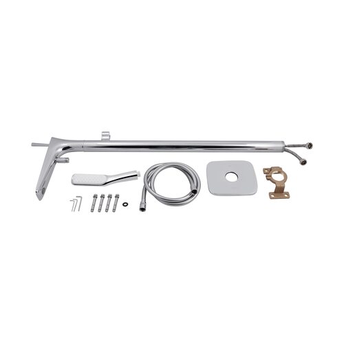Комплектація | Змішувач для підлоги, лійка для ручного душу, душовий шланг, кріпильні деталі. |