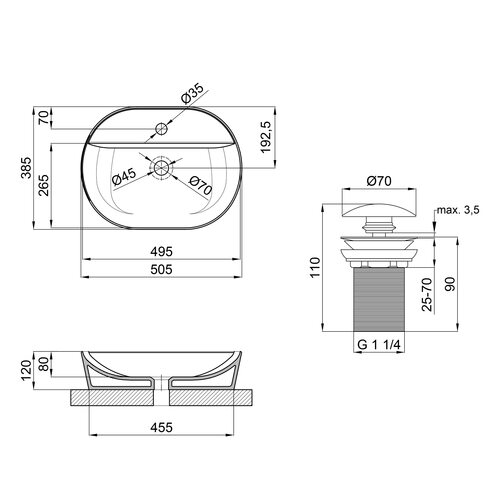 Габарити чаші (ШхДхГ), мм | 495х265х80 |