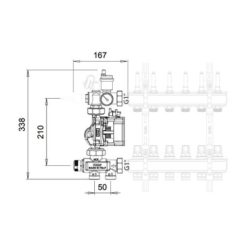 Компактна насосна група ICMA Арт. М061 призначена для систем теплої водяної підлоги та для підключення до розподільчих колекторів. Насосна група відповідає за підтримку стабільної температури води та за її безперервну циркуляцію. Регулювання температури проводиться простим поворотом регулюючої ручки.