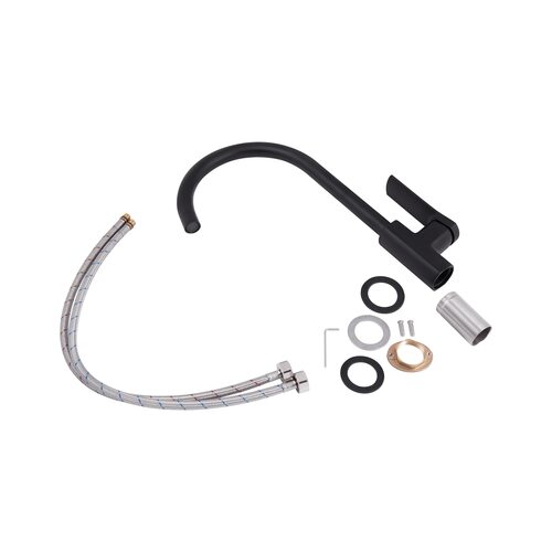 Змішувач для кухні Qtap Slavonice 9042103UB виготовлений з високоякісної харчової латуні, яка стійка до впливу корозії, ударів і появи тріщин. Чорна матова поверхня корпусу змішувача надає йому привабливості. Змішувач має одноважільне управління, за допомогою якого можна відрегулювати температуру і напір холодної та гарячої води. Виконаний в сучасному стилі, з поворотним виливом та стане справжньою родзинкою в інтер'єрі кухні.