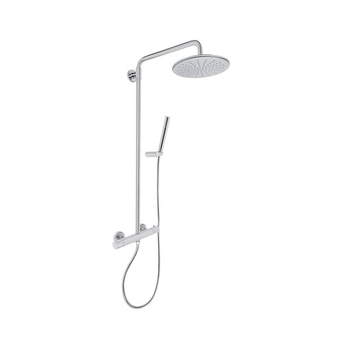 Термостатична душова система Qtap Brno 5769103ONC - естетичне та практичне рішення в одному виробі. Вона виготовлена з якісної латуні, нержавіючої сталі та міцного пластику, що не схильні до корозії. Система виконана з хромованою глянсовою поверхнею, обладнана змішувачем, а також двома видами душу - ручним та верхнім. Перемикання між споживачами здійснюється за допомогою вентеля на корпусі змішувача. Виріб стане яскравим акцентом в інтер'єрі будь-якої ванної кімнати.