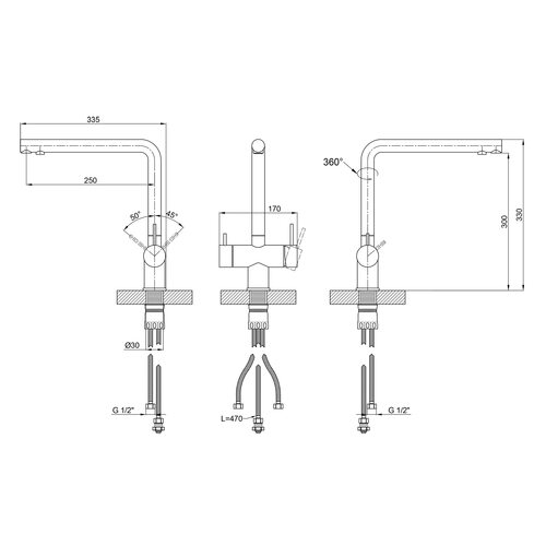 Додаткові характеристики | Довжина гнучкого підведення - 470 мм. |