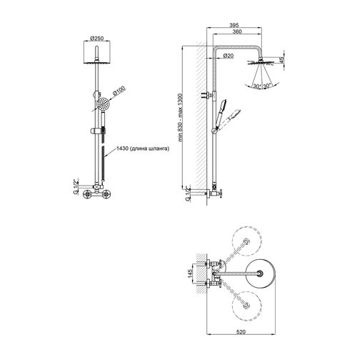 Довжина кронштейна для верхнього душу, мм | 360 |