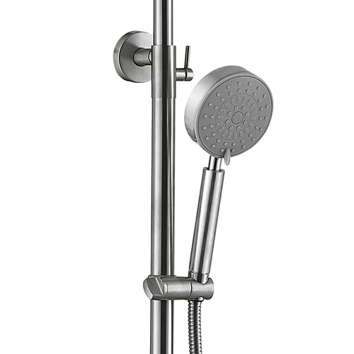 Комплектація | Змішувач, кронштейн для верхнього душу, лійка для верхнього душу, кронштейн для ручного душу, лійка для ручного душу, душовий шланг, душова стійка, кріплення. |