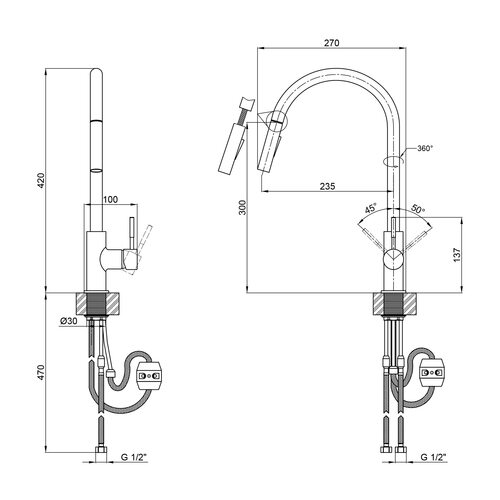 Додаткові характеристики | Довжина гнучкого підведення - 470 мм. |
