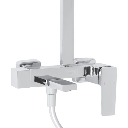 Комплектація Змішувач, кронштейн для верхнього душу, лійка для верхнього душу, кронштейн для ручного душу, лійка для ручного душу, душовий шланг, шлангове з'єднання, кріплення.