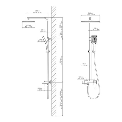 Діаметр лійки, мм | Верхній душ: 210х315 |