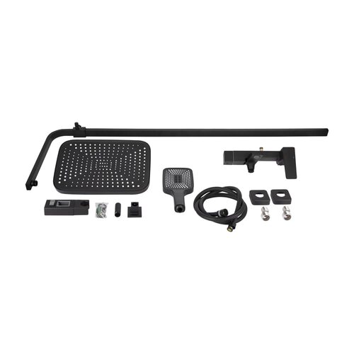 Комплектація | Змішувач, кронштейн для верхнього душу, лійка для верхнього душу, кронштейн для ручного душу, лійка для ручного душу, душовий шланг, шлангове з'єднання, кріплення. |