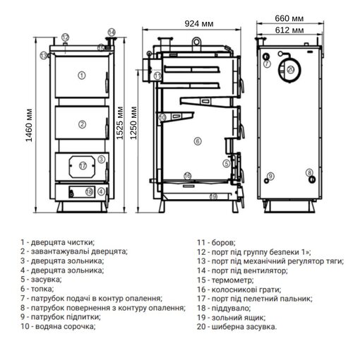 Габаритні розміри котла (ВхШхГ), мм | 1525х655х960 |