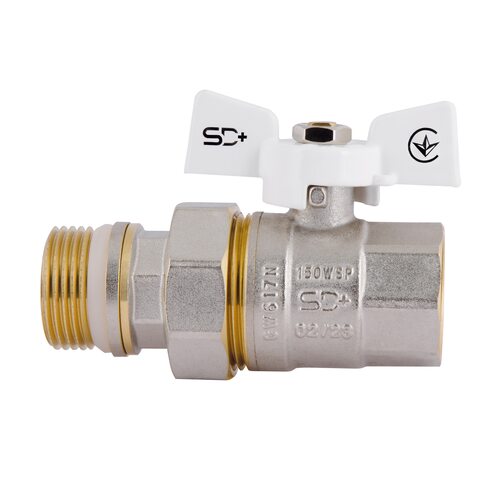 Кран кульовий з америк.(конус) антипротікання прямий метелик латун. нікелір. 1"зв PN40 SD900NW25PN40 SD Plus