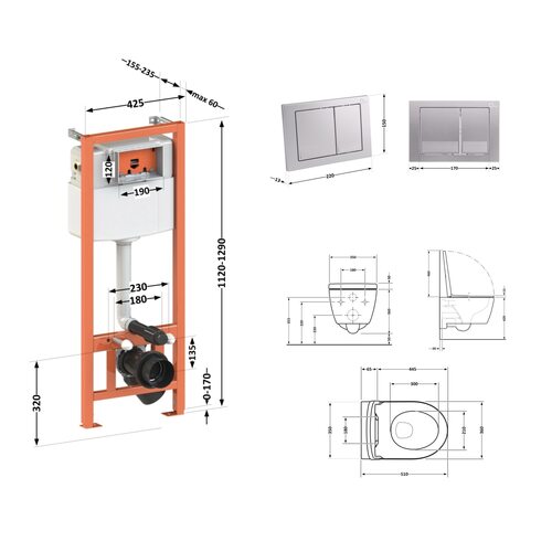 | Тип виробу | Набір інсталяція + унітаз із сидінням |