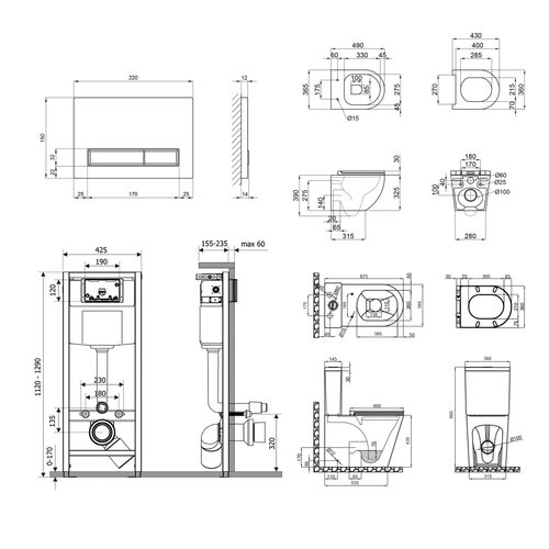 Вага брутто, кг | 11,9 – інсталяція; 0,38 – панель змиву; 29 – унітаз Tern; 40,1 – унітаз Scorpio; 27,65 - унітаз Jay |
