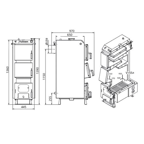 Габаритні розміри топки (ВхШхГ), мм | 450х270х500 |