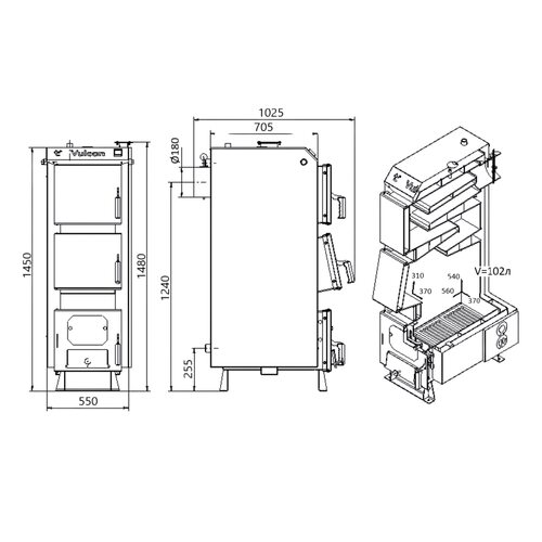 Габаритні розміри топки (ВхШхГ), мм | 540х370х560 |