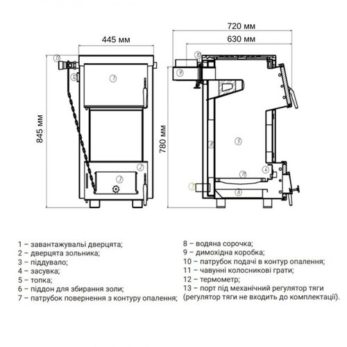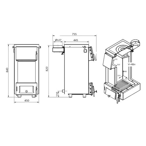Габаритні розміри топки (ВхШхГ), мм | 480х310х310 |