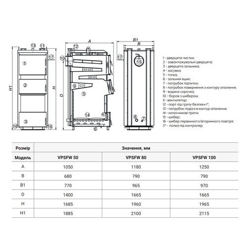 Габаритні розміри топки (ВхШхГ), мм 775х620х835