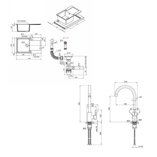 Колір | Чорний / білий – змішувач, чорний – мийка |