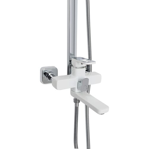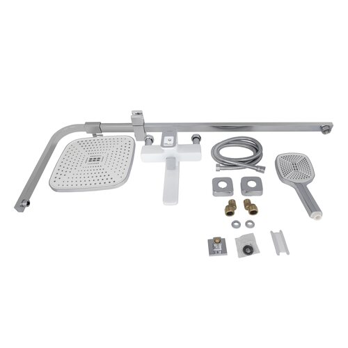 Комплектація | Змішувач, кронштейн для верхнього душу, лійка для верхнього душу, кронштейн для ручного душу, лійка для ручного душу, душовий шланг, душова стійка, кріплення. |