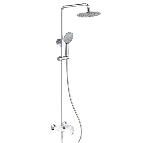 Комплектація | Змішувач, кронштейн для верхнього душу, лійка для верхнього душу, кронштейн для ручного душу, лійка для ручного душу, душовий шланг, душова стійка, кріплення. |