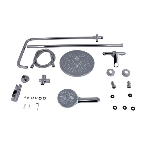 Комплектація | Змішувач, кронштейн для верхнього душу, лійка для верхнього душу, кронштейн для ручного душу, лійка для ручного душу, душовий шланг, шлангове з'єднання, кріплення. |