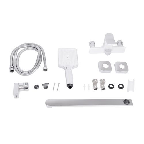 Комплектація | Змішувач, лійка для ручного душу, душовий шланг, кронштейн, деталі кріплення. |
