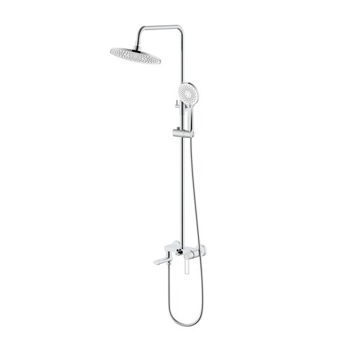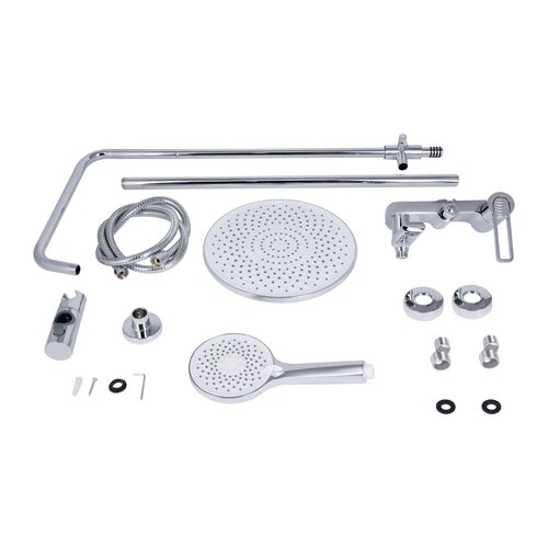 Комплектація | Змішувач, кронштейн для верхнього душу, лійка для верхнього душу, кронштейн для ручного душу, лійка для ручного душу, душовий шланг, душова стійка, деталі кріплення. |
