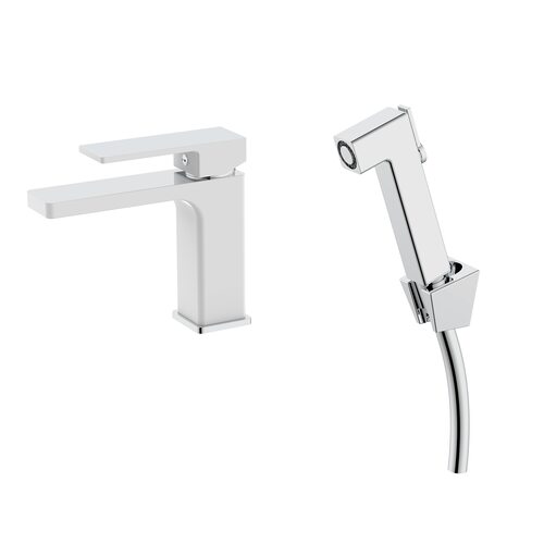 Змішувач для раковини Qtap Gemini (з гігієнічним душем) QTGEM272CRW45691 Chrome/White