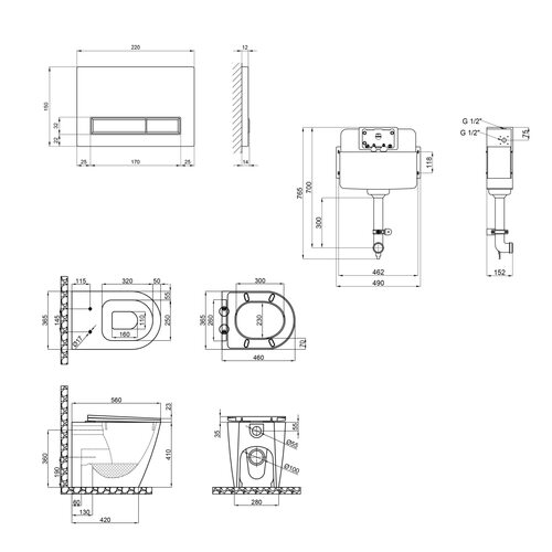 Вага брутто, кг | 8,25 – інсталяційний бачок; 0,8 – панель змиву; 37 – унітаз |