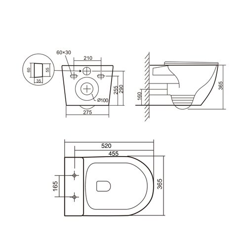 Зверніть увагу Нами докладено всіх зусиль для подання точної і правдивої інформації в описі унітазу. Основні розміри відповідають зазначеним на кресленні, а граничні відхилення від розмірів можуть змінюватись у межах ±2%, що так само, як і певні нерівності поверхні, пов'язані з технологією сушіння. Технологічний отвір зі зворотного боку унітазу може бути підрізаний для зручності монтажу - нижня перемичка потрібна тільки на період виробництва виробу. Для експлуатації вона не потрібна.