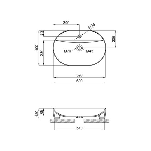 Габарити чаші (ШхДхГ), мм 590х280х85