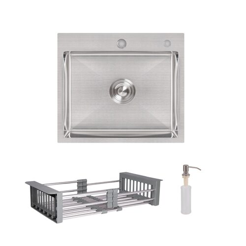 Комплект Lidz Handmade H5045 Мийка для кухні інтегрована Brushedу комплекті з дозатором + Lidz K01G Корзина для кухонної мийки