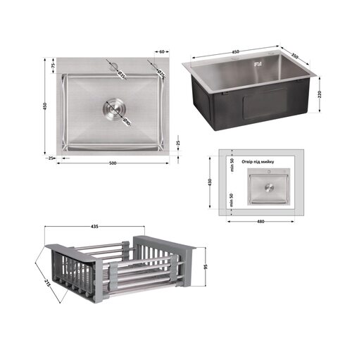 Колір Сталь - мийка; сірий - кошик
